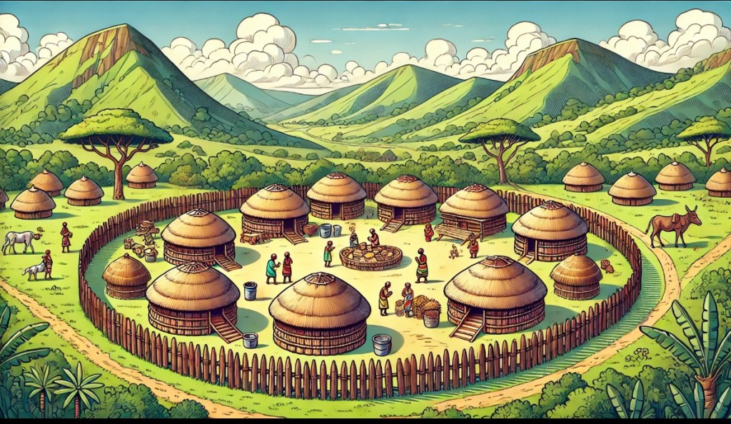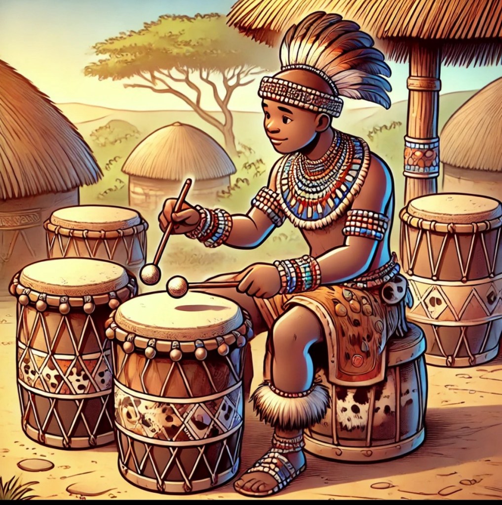 Captain PillowBelly settled into a comfy spot, opened the book, and started reading about the Zulu people. Suddenly, a bright flash filled the air, and with a soft whoosh, Captain PillowBelly found himself standing on a warm hillside surrounded by green fields. He heard laughter, music, and the sound of drums in the distance. He blinked in surprise. “Where am I?” he asked aloud, looking around.